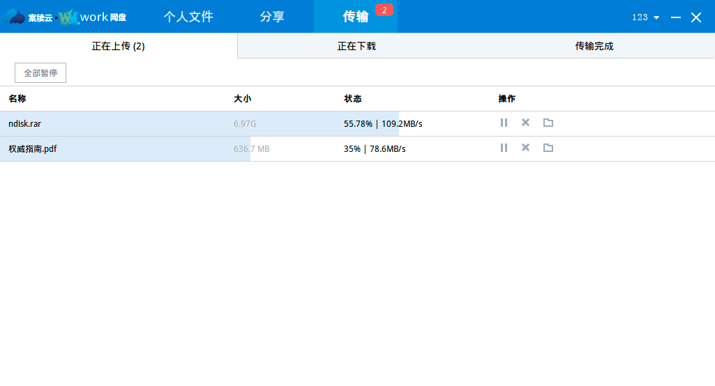 大文件传输峰值可以达到100M+/s,极速秒传,可以节省大量的传输等待时间,告别在屏幕面前苦苦等待的日子。